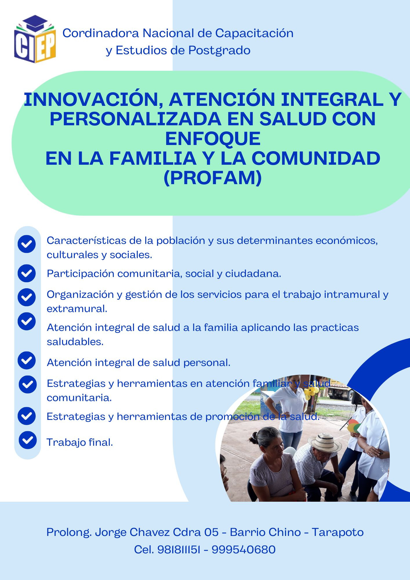 BIENVENIDO AL DIPLOMADO EN INNOVACIÓN, ATENCIÓN INTEGRAL Y PERSONALIZADA EN SALUD CON ENFOQUE EN LA FAMILIA Y LA COMUNIDAD (PROFAM)